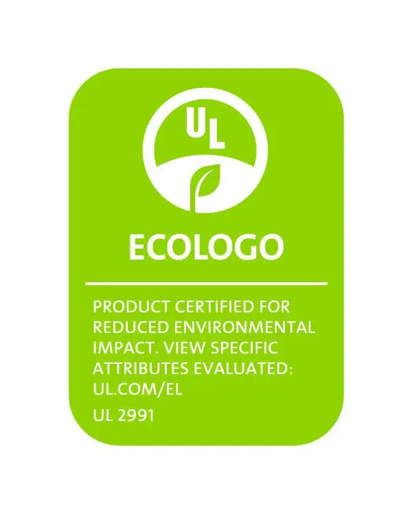 Ecologo certified from UL for reduced overall burden on the environment.
